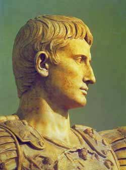 Octave apparaît sur le devant de la scène politique romaine en 44 avant J.-C. à dix-neuf ans, avec l’assassinat de César dont il est depuis un an le fils adoptif. A Rome, l’adoption est véritablement une seconde naissance, le transfert du culte des lares, les dieux domestiques, donnant à l’adopté une nouvelle filiation. Octave, fils du sénateur Octavius, se rattache à présent à la Gens Julia, cette famille dont Jules César revendique l’ascendance divine (son ancêtre est la déesse Vénus). Octave, désormais Divis Julii Filius, fils du divin César, a devant lui, à la mort de ce dernier, un immense avenir politique.