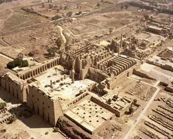 Karnak : trois sanctuaires au cœur de Louxor, anciennement Thèbes, capitale de l’Égypte pharaonique. Dans l’un de ces temples : la célèbre salle hypostyle [2]. , où se dressent 134 colonnes avoisinant pour les plus hautes les 20 mètres. « L’ensemble est grandiose, et la densité des décors gravés dans la pierre sur ces colonnes est saisissante, s’émerveille Emmanuel Laroze, architecte au laboratoire « État, religion et société dans l’Égypte ancienne et en Nubie » [3] . Toutes ces gravures relatent l’histoire de ce lieu transformé successivement par huit pharaons. » Karnak fut en effet le centre religieux de l’Égypte dès le Moyen Empire (environ 2 100 av. J.-C.) et pendant près de vingt siècles.