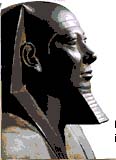 Une réserve de son temple funéraire abritait des statues-groupes en diorite représentant le roi en compagnie de divinités ou de la grande épouse royale. Premier exemple de ce type iconographique où la pierre dure est travaillée avec soin, les compositions sont parfaitement équilibrées ; aussi, malgré leur petite taille, ces statues confinent-elles à une monumentalité que peu de colosses peuvent égaler.