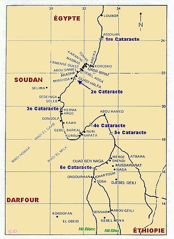 Depuis le Nord de Khartoum au Soudan actuel, la vallée du Nil sinue de cataracte en cataracte jusqu’à l’Égypte. Dès l’Antiquité, Hérodote évoque ces « Éthiopiens » qui vivent entre la première et la sixième cataracte du Nil.