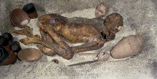 | 32756 | 1,51 m | Adulte, probablement un homme | Ce corps d’adulte possède des restes de bandages sur le cou, le pelvis et la cheville droite. Le crâne a été détaché, avec des incisives manquantes mais les dents restantes sont en bonne santé. Le corps a des fractures aux côtes et au fémur gauche. Un bras a été désarticulé au niveau de l’épaule, la main gauche détachée au niveau du poignet, de même que les deux pieds. |