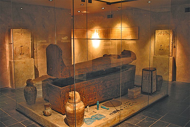 Dans cette salle représentant une chambre funéraire se trouve au centre un sarcophage en bois peint (XXIe dynastie) avec les restes d’une résille de momie, des amulettes, une barque funéraire, une table d’offrande, des ouchebtis, et deux vases canopes. Sur chacun des quatre murs de cette pièce se trouve une stèle orientée provenant du monument funéraire du général Kasa qui fut enseveli à Saqqarah et devait vivre sous le règne de Séthi Ier à l’époque de la XIXe dynastie. Ces stèles scellées dans les quatre murs du caveau servaient de réceptacle à une briquette inscrite d’une formule appropriée et à une figurine, conformément au livre des morts. Ces quatre stèles forment un ensemble unique.