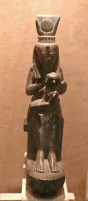 – tête de chatte en bronze de la basse époque, reliquaire de chat, statue en bronze de Neith (déesse très ancienne de la ville de Saïs), statuettes de Thot ;