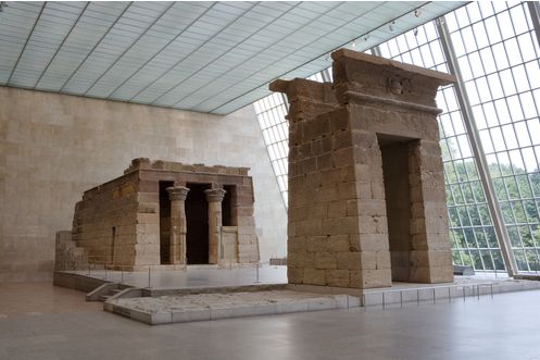Cependant, la pièce majeure et la plus populaire du département est sans nul doute le temple de Dendour. Ce temple fut démantelé par le gouvernement égyptien pour le sauver de la montée des eaux, lors de la construction du barrage d’Assouan, puis offert aux États-Unis en 1965. Il est réassemblé au Met, dans l’aile Sackler en 1978. Il se trouve dans cette salle immense entourée d’un bassin et éclairée par une gigantesque baie vitrée donnant sur Central Park.