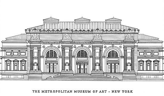 Cependant, grâce à une négociation avec la municipalité de New York, ces locaux ne sont que temporaires. Le Met fait en effet l’acquisition d’un terrain à l’est de Central Park, où il construit un mausolée néogothique en briques rouges, dessiné par les architectes américains Calvert Vaux et Jacob Wrey Mould6. Le Met est depuis resté à cet endroit et la structure originale fait toujours partie du bâtiment actuel. Nombre d’extensions seront construites au fil du temps, comme la façade Beaux-Arts, dessinée par Richard Morris Hunt7. Cette façade, commencée en 1912 et complétée en 1926, est construite en calcaire gris de l’Indiana. L’aile sud est entreprise en 1911, l’aile nord en 1913 : elles sont l’œuvre du cabinet d’architectes McKim, Mead et White. En 1963, à l’instigation d’André Malraux, le musée expose La Joconde qui reçoit la visite de dizaines de milliers de personnes8.