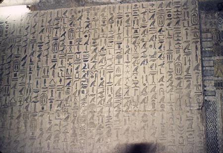 Pour la première fois, les parois de la chambre du sarcophage et des couloirs d’accès sont recouvertes de textes, recension connue des modernes sous le nom fameux de Textes des Pyramides. L’édifice est restauré sous le règne de Ramsès II par le prince archéologue Khâemouaset. Les textes, copiés au cours de la période tardive, furent insérés dans la décoration de tombeaux privés.