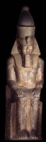 Ramsès II représenté en enfant protégé par le dieu Houroun - Statue trouvée à Tanis autrefois à Pi-Ramsès - Musée du Caire
