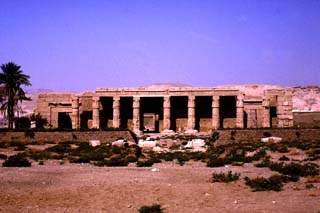 C’est ce soin qui marque une autre réalisation d’importance, le mémorial élevé à Abydos, ville sainte d’Osiris. Erigé à l’aide de blocs de calcaire fin, le temple est le Memnonium admiré par Strabon. Il marque avant tout politiquement la reprise de la tradition du Moyen Empire et de la XVIIIe dynastie. Le temple lui-même s’élève au-dessus d’un cénotaphe représentant le tombeau symbolique d’Osiris. Ce dernier prend la forme d’un tombeau royal et est orné de livres funéraires. Le temple doit alors être perçu comme un temple funéraire divin où des tendances archaïsantes se font jour dans l’architecture. Le roi y reçoit un culte au sein d’un groupe divin, liant la triade abydénienne (Osiris, Isis, et Horus) aux grands dieux impériaux (Amon, Ptah, Rê-Harakhty). Là aussi Ramsès II devra se charger de terminer les travaux d’une ampleur considérable. Un texte de dédicace nous apprend que Séthi Ier fournit au temple des statues d’or massif. Pour se faire, il lui faut rouvrir les routes menant aux mines d’or du désert de l’Est. Il y fait creuser un temple rupestre au Ouâdi Miah, où il est présenté par les inscriptions comme le bon pasteur qui a à cœur le bien-être de ses hommes et qui inspiré par Amon indique l’endroit précis où doit être creusé le puits qui fournira l’eau potable aux caravanes minières. Son règne est d’ailleurs marqué par une remise en état globale des routes du royaume et par le creusement d’autres puits au nord pour jalonner la Route d’Horus, vers l’Asie.