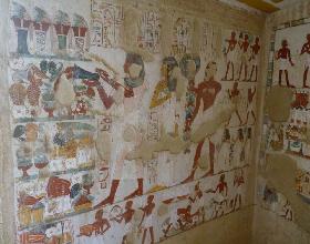C’est la sépulture de Djéserkarêseneb, scribe, compteur des grains du grenier d’Amon, durant le règne de Thoutmôsis IV et sa famille.