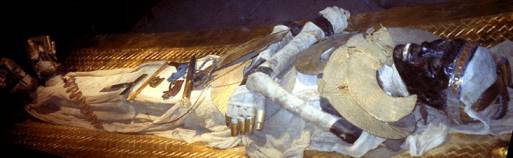 Toutânkhamon sombra dans l’oubli jusqu’à ce que des objets mineurs attirent l’attention du monde savant et ne le placent sur la liste des rois dont la sépulture demeurait à découvrir. Sans doute le caractère hâtif et peu royal de son inhumation contribua à sauvegarder la tombe durant plusieurs millénaires, son entrée étant occultée par les vestiges de cabanes d’artisans ramessides. Howard Carter, ayant déjà retourné systématiquement chaque pouce de la Vallée des Rois, était sur le point de renoncer, lorsque le miracle eut lieu. La tombe livra un mobilier d’une telle richesse qu’il est ainsi possible d’imaginer celles qu’avait pu abriter la tombe d’un roi tel que Ramsès II.