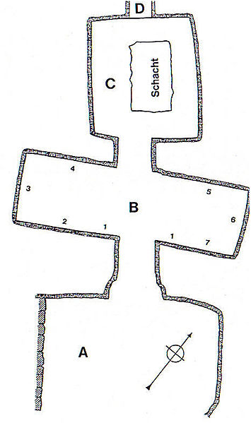 La tombe est creusée dans la montagne thébaine selon un axe nord / nord-ouest, ce qui n’est pas conforme à l’axe est-ouest canonique idéal, l’est représentant le lever du soleil, le Nil, le jour et la vie, tandis que l’ouest symbolise le soleil couchant, l’obscurité, le royaume des morts. Les coupes en plan illustrent cette disposition idéale théorique sur laquelle nous nous baserons pour la description des salles intérieures.