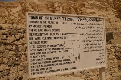Le complexe funéraire de Irounéfer se compose d’une chapelle d’offrandes en surface construite en briques crues et d’une chambre funéraire taillé dans la roche.