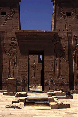 Déesse nationale, Isis reçut un culte sur l’ensemble du territoire égyptien et même à Byblos. Son temple le plus important et le mieux conservé se trouve dans l’île de Philae, au sud d’Assouan et aux confins de la Nubie. Elle y veille sur l’Abaton de Biggeh où se trouve la tombe secrète d’Osiris, d’où émanent les lymphes du dieu pour donner naissance à la crue. Elle continua de recevoir un culte de la part des tribus nomades jusqu’au sixième siècle après J.C., à une époque où pourtant l’ensemble de l’Egypte était pourtant totalement christianisée. Associée à Hathor dont elle forme le volet social, épouse plutôt qu’amante, elle recevait un culte dans le sanctuaire de la déesse à Dendara.