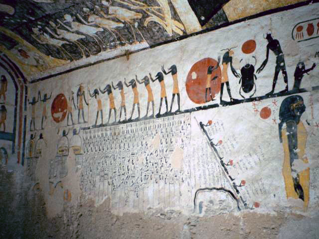 Détail des fresques représentant une des étapes de la transformation du dieu Khépri