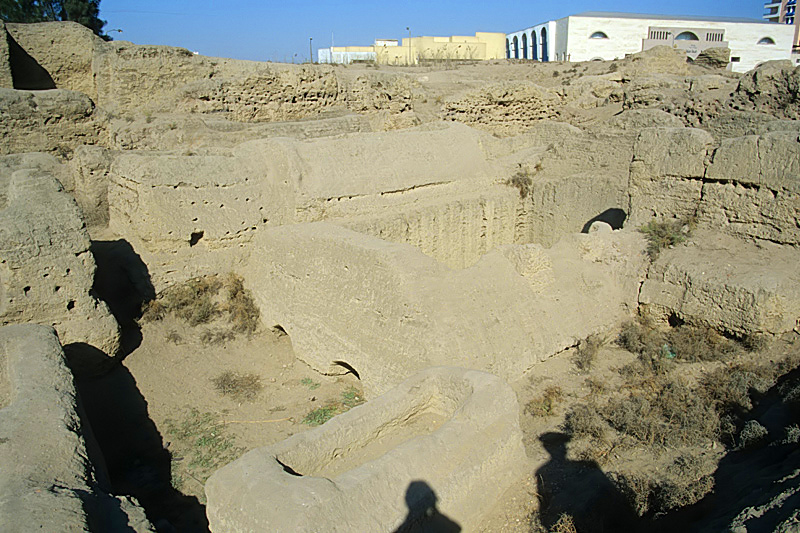 Au sud du cimetière des chats, plusieurs koms indiquent l’emplacement des nécropoles de la ville, qui s’y implantèrent dès la période prédynastique. Des fouilles récentes menées par l’université de Zagazig ont permis d’étudier les niveaux de l’Ancien Empire dégageant plusieurs mastabas dont les dimensions importantes reflètent l’importance de la cité des premiers temps, mais également des sépultures plus humbles, très souvent intactes, livrant un mobilier funéraire pauvre mais instructif sur les coutumes funéraires d’alors. Les corps étaient inhumés en position contractée la tête orientée à l’ouest et l’on plaçait autour d’eux des offrandes contenues le plus souvent dans de simples récipients en céramique. Cette pratique est d’ailleurs attestée jusqu’à la fin de l’Ancien Empire voire au-delà grâce aux inscriptions découvertes dans ces tombes.