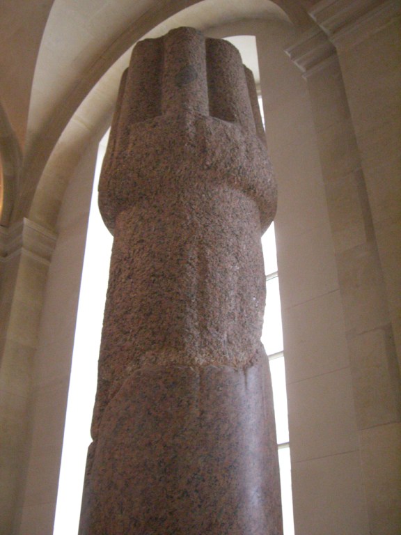 Ce sont des premières cours également que proviennent les grandes colonnes monolithes de style palmiforme dont les chapiteaux élancés couronnent des fûts lisses qui ont reçu la marque de Ramsès II. Ces colonnes sont probablement des remplois de l’Ancien Empire tant leur style est comparable à celles qui restent encore visibles à Abousir ou à Saqqarah. En effet les rois des Ve et VIe dynasties en firent venir des chargements entiers des carrières de granit d’Assouan afin d’orner leurs sanctuaires et la présence de monuments de ces souverains à Bubastis est attestée. Ces colonnes atteignaient la hauteur déjà respectable pour un sanctuaire de cette importance d’une dizaine de mètres et devaient conférer à ces cours cérémonielles un aspect harmonieux et majestueux.