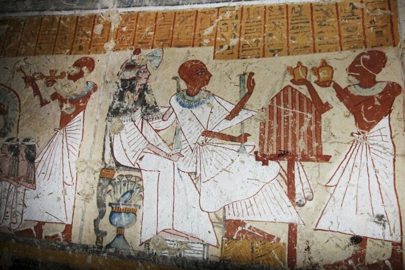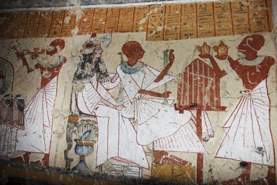 Un des murs montre le chef des brasseurs, également à la tête des réserves royales, présentant des offrandes aux dieux, entouré de sa femme et de sa fille, selon le communiqué du ministère.