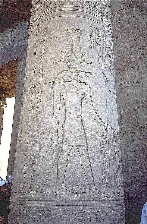 Il est issus d’un démiurge de Fayoum, Soukhos, sorti de l’eau ténébreuse du chaos primordial pour ordonner le Monde, comme le crocodile sort de la fange pour déposer ses oeufs sur la berge.