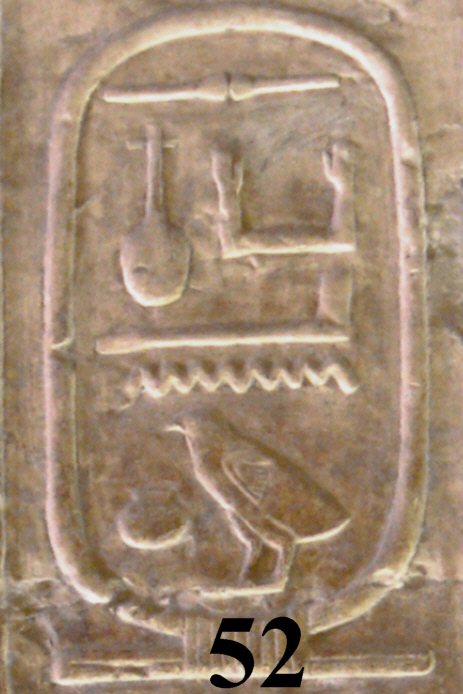 L’inscription dans le Canon royal de Turin de son nom de roi est endommagée, seulement un fragment a survécu mais elle est rapprochée par les spécialistes au nom de naissance noté (52) sur la liste d’Abydos.