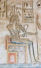 Il pouvait aussi être représenté avec une tête d’hippopotame, toujours sous sa forme hermaphrodite.