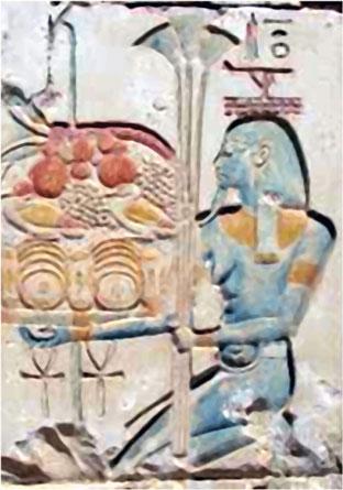 Pour s’attirer les bonnes grâces du dieu fleuve, les Égyptiens lui donnaient de grandes quantités d’offrandes. Sur le mur des temples, on le trouve représenté devant des tables d’offrandes, couvertes de produits provenant des différents nomes d’Égypte. Dans ces représentations, il porte sur la tête le symbole de la région correspondante.