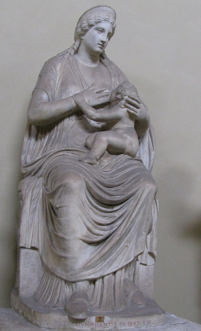 ne vivant en monde clos, l’art chrétien primitif a nécessairement dû puiser son inspiration auprès des religions polythéistes de son temps. En Égypte, les artistes et les religieux coptes ont été, très naturellement, influencés par le message spirituel pharaonique et par son iconographie très riche en symboles religieux. Le mythe d’Horus l’Enfant né miraculeusement puis allaité et protégé par sa mère Isis a ainsi déteint sur les représentations de la Vierge Marie, mère de l’Enfant Jésus. Le culte d’Isis et Harpocrate était très largement diffusé autour de la mer Méditerranée entre le IVe siècle avant, et le IVe siècle de notre ère. Dans l’iconographie, les représentations d’Isis s’apprêtant à allaiter son fils Horus assis sur ses genoux sont très répandues sous la forme de statuettes de dix à vingt centimètres de haut. Il est dès lors possible que l’art copte des Ve siècle-VIIe siècle se soit inspiré, consciemment ou non, de ce motif pour l’appliquer à Marie et à l’Enfant-Jésus.