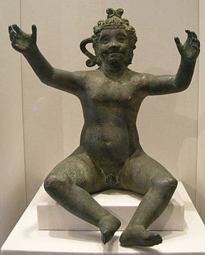 mer Méditerranée. La croyance a même gagné les bords du Rhin, la Pannonie et l’Angleterre, alors possessions de l’Empire romain. Le culte des dieux égyptiens n’est toutefois resté le fait que d’une petite minorité de croyants et ne s’est jamais hissé au rang de religion majoritaire. De nombreuses statuettes, amulettes, bijoux, lampes à huile ont été découvertes figurant Horus dans l’enfance (Harpocrate), soit seul, soit sur les genoux de sa mère Isis en train de l’allaiter (typologie des « Isis lactans »). Harpocrate n’a joué qu’un rôle secondaire dans la religion des temples isiaques édifiés à travers le monde romain. Très souvent, il cède même le pas à Anubis, l’« Aboyeur divin ». Le petit Harpocrate était cependant très populaire dans les foyers domestiques comme en témoignent les innombrables statuettes découvertes à travers toute l’Europe et les côtes de l’Afrique du Nord. L’iconographie gréco-romaine s’inspire du style égyptien tout en l’adaptant au goût hellénistique. Horus est invariablement figuré comme un jeune enfant nu. Tantôt, le crâne est chauve comme dans les figurations égyptiennes, tantôt il arbore une abondante chevelure bouclée grecque. Une de ses épaules est parfois habillée de la nébride qui est une peau de cerf, symbole du dieu grec Dionysos auquel Osiris est généralement assimilé. Parfois, il tient dans sa main gauche une corne d’abondance, symbole de fécondité et marque de sa filiation avec Osiris, qui est connu comme dieu de la végétation et de la fertilité. Lorsqu’il est rapproché du jeune Éros, Horus porte des ailes dans son dos et un carquois rempli de flèches. Il peut être représenté debout ou couché et parfois accompagné d’un animal (oie, chien, chèvre, cheval) ou les chevauchant. Malgré toutes les variantes, son geste le plus caractéristique est celui de porter l’index de la main droite vers la bouche.