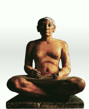 De la Ve dynastie datent les premiers scribes accroupis, triomphe de la composition pyramidale suggestive.