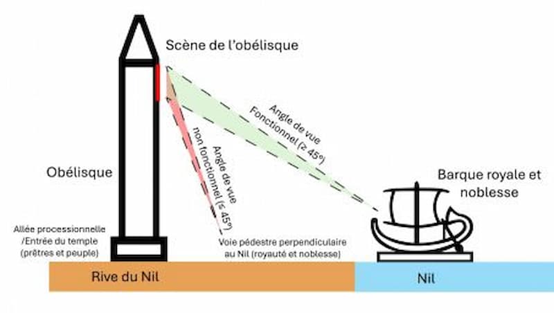 Ces inscriptions ne s’adressaient pas à tous. Elles visaient un public restreint, précisément défini : l’élite égyptienne, lettrée et initiée aux codes visuels du pouvoir royal. L’un des messages, gravé sur la face originellement tournée vers l’ouest, ne se trouve lisible que depuis un angle de 45 degrés. Cela correspondait à la vue qu’avaient les nobles accostant au temple de Louxor par le Nil lors de la fête de l’Opet. Cette cérémonie annuelle honorait Amon et célébrait le renouvellement de son énergie divine. Dans ce contexte, la visibilité de l’inscription n’avait rien de fortuit. Elle plaçait Ramsès II dans une posture de légitimité religieuse incontestable : celle du souverain choisi par les dieux pour régner.