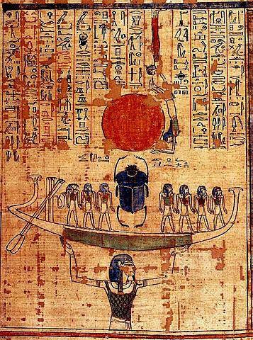 Il est aussi l’océan sur lequel navigue la barque du Soleil, Rê. Cette barque voyage alternativement dans le monde visible, diurne, et ensuite dans le monde invisible, nocturne, qui symbolise le parcours de l’âme dans l’au-delà, après la mort. « Il porte la barque solaire qui elle-même porte le scarabée poussant le disque solaire. C’est le parcours objectif de la vie, c’est le parcours du Soleil qui avance. Au-dessus, avec la tête en bas, le dieu Osiris vient encercler une partie de la Douât pour créer un espace intérieur qui va être le monde de l’au-delà. » [4]