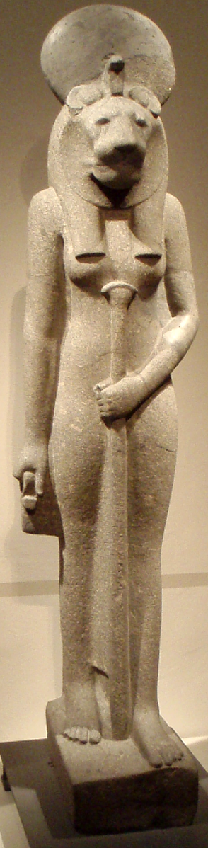 Déesse guerrière personnifiant la puissance destructrice du Soleil, elle est l’instrument de la vengeance de Rê. Elle aurait été spécialement créée par lui pour réprimer les hommes révoltés contre lui, comme l’indique le Livre de la vache du ciel, dont le texte est gravé sur les parois de plusieurs tombeaux de la Vallée des rois. Son corps brûlant et ses flèches incandescentes détruisent les ennemis du roi, déchaînant la fureur de Rê sur les avatars d’Isfet et les ennemis du pharaon. Elle était celle qui conseillait et guidait les pharaons au combat. Mais, épouse de Ptah et mère de Néfertoum dans la triade memphite, elle est aussi, dans ce rôle maternel, la déesse de la guérison et du foyer [2].