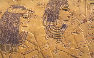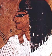 Comme le rapporte ce poème égyptien : La bien-aimée connaît très bien l’usage du lasso. De ses cheveux, elle lance contre moi ses rets, de ses yeux, elle me rend captive…, la chevelure joue un grand rôle dans la séduction chez les femmes égyptiennes. Les cheveux des femmes, qui étaient souvent portés très long, étaient l’objet des plus grandes attentions. Dans les riches maisons des coiffeuses frictionnaient soigneusement les cheveux de leur patronnes avec de l’huile aromatique censé fortifier et assouplir la chevelure. Elles les lissaient ensuite avec des peignes d’ivoire puis les divisaient en de multiples tresses. Le tout étant ensuite orné de diadèmes ou de différentes décorations en forme d’oiseaux.