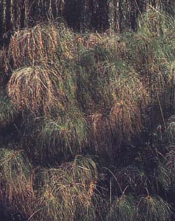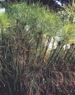 Cette plante de la famille des cypéracées couvre les régions les plus humides du delta du Nil. Sa tige de la grosseur d’un bras peut atteindre 3 mètres ; elle porte à son extrémité une touffe de feuille triangulaires.