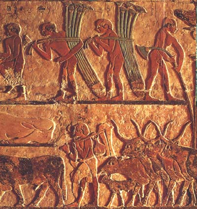 La tache était rude à cause des déplacements dans les terrains boueux des marais. Il leur fallait éviter les étangs, les fondrières et les bras morts et se méfier de la faune des marais : les crocodiles, hippopotames, cobras ou autres animaux dangereux très nombreux dans la moiteur des forets de papyrus. A la fin de la journées, ils rentraient dans leur village par des chemins secs connus d’eux seuls. Les papyrus étaient ensuite soigneusement liés en bottes et transportées à dos de bœufs jusqu’à des ateliers ou les plantes étaient transformées.