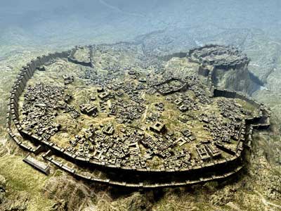 Juchée sur un haut promontoire qui surplombe une allée entourée de collines, la citadelle d’Hattousa est protégée par six kilomètres de remparts. Dans cette muraille cyclopéenne, formée d’énormes blocs de pierre et jalonnée de tours de défense