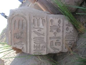 Un quai auquel on accédait par un canal relié au temple de Montou de Karnak, précédait un dromos de sphinx assez ruinés aujourd’hui. Le quai est lui en meilleur état et même s’il est envahit par l’herbe qui pousse sur tout le site, on peut encore trouver des témoignages millénaires de pélerins sous la forme de graffiti en démotique, dédicaces ou encore empreintes de pieds gravées (on connait d’autres exemples célèbres de ce genre de témoignages pieux notamment sur les restes du toit de la grande salle hypostyle de Karnak).