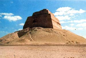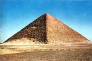 Le roi Snéfrou fit édifier à Dahchour, à quelques kilomètres au sud de Saqqarah, deux très grandes pyramides, la « rhomboïdale » et la pyramide septentrionale, qui à elles deux représentent un cube de pierre d’un volume très nettement supérieur à celui de la grande pyramide de Guizeh, soit plus de 3 000 000 de mètres cubes au lieu de 2 600 000 mètres cubes. La rhomboïdale, construite la première, n’avait certainement pas été initialement prévue sous sa forme finale. Son côté n’aurait eu d’abord que 300 coudées (env. 157 m) de longueur avec une pente plus accusée (580).