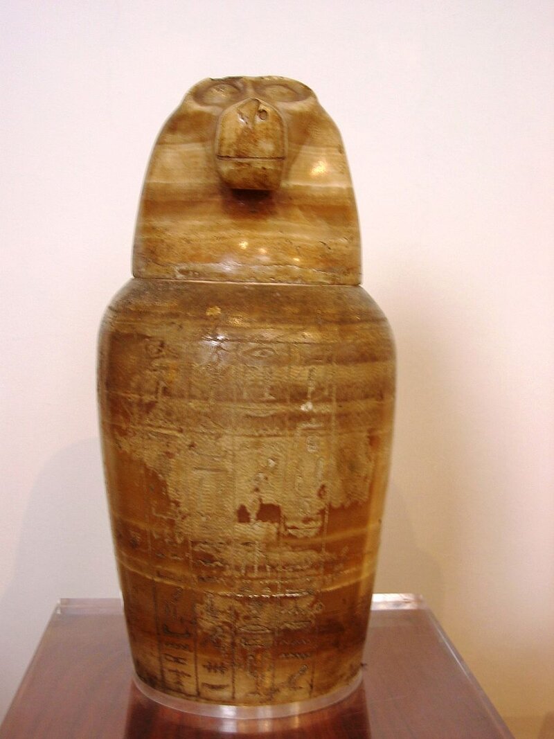 Hâpi est une divinité protectrice des poumons des morts. Elle est représentée avec une tête de babouin. Elle est l’un des quatre génies funéraires anthropomorphes appelés les enfants d’Horus. Ils avaient pour mission de garder les viscères du corps du défunt. À partir de la fin de la XVIIIe dynastie, les bouchons des vases canopes sont modelés à l’image des divinités qui les gardent.