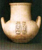 Vases funéraires servant à conserver les viscères du défunt. Toujours au nombre de quatre, ils