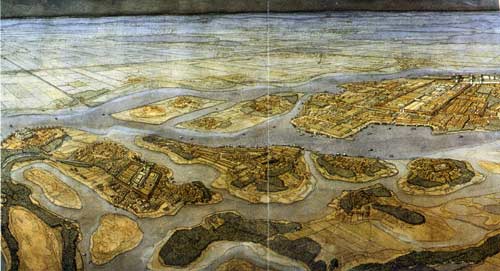 Au coeur de la ville, le grand parvis ou se déroulent les fêtes et les jubilés est rythmé par six obélisques en granit. Les colosses sculptés à l’éffigie du souverain se multiplient dans toute la cité. L’interieur du palais n’est que raffinement. Les murs sont ornés de peintures représentant des scènes bucoliques ; les mosaïques reproidissent des bosquets de lotus, des étangs poissoneux et des parterres de fleurs. Les vastes terrasses s’ouvrent sur le grand lac et les somptueux jardins du palais, un tourbillon de couleurs et de parfums émanant des parterres de roses, de camomille, de lotus, de lis et de pavots. Tamaris, eucalyptus, vignes vierges à grosses grappes et sycomore jouxtent les palmiers doum dont les larges ombrelles vertes se refletent dans les eaux des bassins.