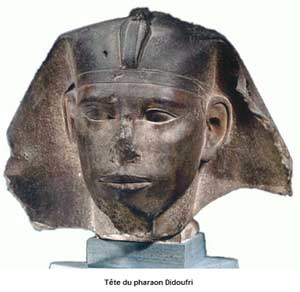 Djédefrê (ou Djidoufrâ), connu également sous la forme hellénisée de son nom Didoufri ou Rêdjédef, est un roi égyptien de la IVe dynastie, sous l’Ancien Empire. Manéthon le nomme Ratoises. Djédefrê régna aux alentours de 2550 avant notre ère1, il succéda à son père Khéops, le constructeur de la Grande Pyramide de Gizeh, et précéda soit son frère ou demi-frère Khéphren, soit l’éphémère roi constructeur de la pyramide inachevée de Zaouiet el-Aryan , que certains chercheurs pensent être son fils Baka. Sa mère n’est pas connue avec certitude. Il fut le roi qui introduisit le titre royal Sa-Rê (signifiant « Fils de Rê ») et le premier à relier le nom de son cartouche au dieu soleil Rê. Il n’a laissé que peu de traces de son règne, d’autant plus éclipsé que placé entre les trois rois illustres de la dynastie, Khéops, Khéphren et Mykérinos. Son complexe funéraire est situé à Abou Rawash, au nord du Caire.