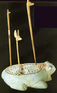 – Des pantins de bois articulés, dont les deux modèles les plus répandus sont le crocodile et l’hippopotame (puisqu’ils font partie de la vie des Égyptiens)