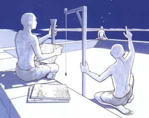 L’anthropomorphisme de la codification (épaule droite, oreille droite, ¦il droit, milieu, ¦il gauche, oreille gauche, épaule gauche), de même que la représentation d’un personnage vu de face accompagnant chaque tableau, a longtemps jeté le discrédit sur ces horloges. Comment viser des étoiles en prenant pour repère l’anatomie approximative d’un collègue mollement assis sur la terrasse du temple !