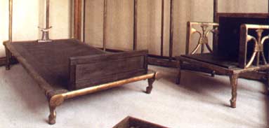 Dans la chambre du maître de maison, on trouvait des lits avec marche-pied et appui-tête. Ces pièce essentielle du mobilier étaient réalisés dans du bois précieux du Liban. Leur pieds étaient très souvent taillés en forme de pattes de lion. Les côtés étaient incrustés d’ivoire. Le dossier, fait d’osier tressé très finement, représentaient des fleurs de lotus.