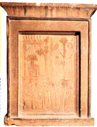 Les représentations de banquet funéraire sont nombreuses. On les retrouve dessinées ou gravées comme la stèle de la princesse Néfertiabet, soeur ou fille de Khéops. Sur celle-ci on peut voir la princesse assise sur un tabouret à pieds de taureau. Cette magnifique jeune femme est vêtue d’une tunique en peau de léopard. Elle semble montrer de la main un guéridon sur lequel sont disposées des tranches de pain. Tout autour, des images représentent les offrandes nécessaires à sa survie dans l’au-delà que l’inscription - comme le veut la coutume - lui souhaite par milliers. On peut ainsi y distingué des canards à la tête tranchée, des cottes et des pattes avant de boeuf, des fruits tel des figues, des caroubes ou des jujubes, sans oublié de la bière et du vin.
