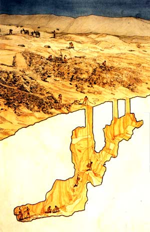 Sous le Nouvel Empire de véritables expéditions militaires furent organisées vers les lieux d’extraction. Il fallait avant tout se défendre contre les nombreuses attaques des Bédouins du désert. Séthi Ier et son fils Ramsès II firent creuser des puits tout au long de la route qui menaient, après dix-sept jours de marche, aux mines de l’Ekayate, en Nubie. La plus vieille carte du monde, aujourd’hui conservée à Turin, date de cette époque. Ce papyrus indiquait les voies d’accès et l’emplacement des mines disséminées dans le désert arabique, à l’est de Coptos, la capitale du cinquième nome d’Egypte, situé à l’endroit ou au nord de Thèbes, le Nil se rapproche le plus de la mer Rouge.