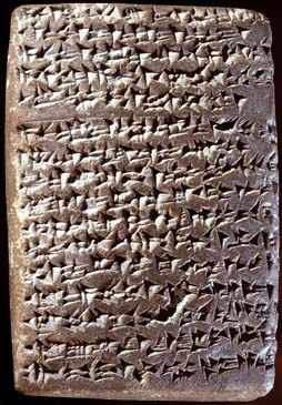 L’écriture cunéiforme est née dans le sud de la Mésopotamie, sans doute inventée par les Sumériens, qui l’utilisèrent pour écrire leur langue, le sumérien ! ; par la suite, elle servit à noter la langue assyrienne, dont le babylonien est un des dialectes. L’assyrien, langue des derniers habitants de Sumer, devint la langue de communication internationale et fut enseigné dans les écoles d’Asie Mineure ! ; l’usage de l’écriture cunéiforme s’étendit en Syrie, en Perse et jusqu’en Égypte, où elle servit à la correspondance diplomatique.