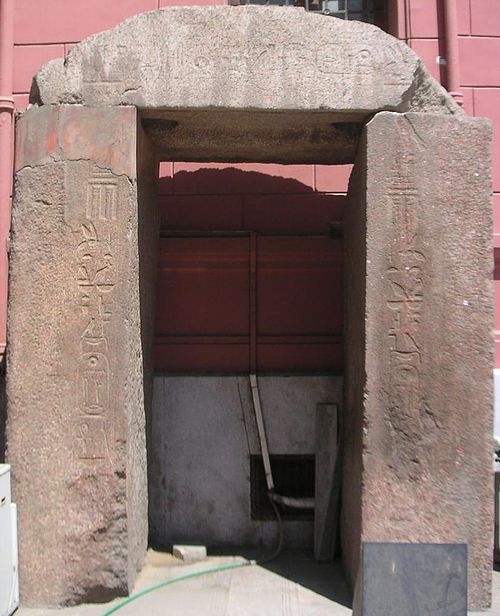 - À Memphis, William Matthew Flinders Petrie a découvert deux montants et le linteau cintré d’une porte en granite rouge qui appartenait à un monument de Niouserrê et dont la décoration indique probablement que ces matériaux remployés dans le temple de Ptah proviennent du temple solaire du roi à Abou Ghorab.