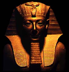 De l’égyptien, « !la Grande Maison ! », souverain de l’Égypte ancienne. À l’origine, le nom était utilisé pour désigner le palais royal d’Égypte et ceux qui l’habitaient (attesté dès l’Ancien Empire vers 2400 av. J.-C.), puis pour désigner la personne du roi (attesté vers 1370 av. J.-C). Le pharaon était à la fois dieu (il était le fils du dieu-soleil Rê) et roi humain (il était considéré comme le successeur légitime d’Horus, premier souverain d’Égypte). Le pharaon possédait des pouvoirs nombreux et étendus. Il était chargé d’assurer l’ordre universel, qui comprenait aussi bien l’ordre cosmique et les relations sociales que les crues du Nil. L’importance de son rôle religieux s’explique par le fait qu’il était le seul interlocuteur des dieux sur la Terre. Son rôle temporel était tout aussi important : garant de l’unité de l’Égypte, il cumulait tous les pouvoirs tant civil que militaire. Les affaires courantes étaient traitées par des fonctionnaires, notamment par les vizirs. Le pharaon était toujours représenté de façon distincte des autres personnages (avec notamment une barbe postiche).