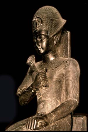 Les statues royales sont des portraits idéalisés, expression d’une fonction royale déterminée. Certes, cette expression n’est pas toujours aussi hiératique qu’elle a pu l’être durant l’Ancien Empire. On peut constater à ce propos une évolution nette au cours de l’histoire égyptienne, sensible dans les notices biographiques royales. Au Moyen Empire, certains souverains - tel Sésostris III - délaissent l’image idéalisée de la personne royale pour lui substituer un portrait exprimant la nature humaine de la fonction pharaonique.